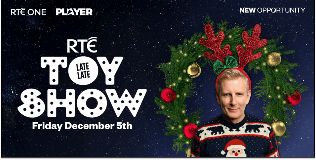 On December 5th, 2025, Patrick Kielty returns to host the nation’s favourite festive celebration – The Late Late Toy Show.